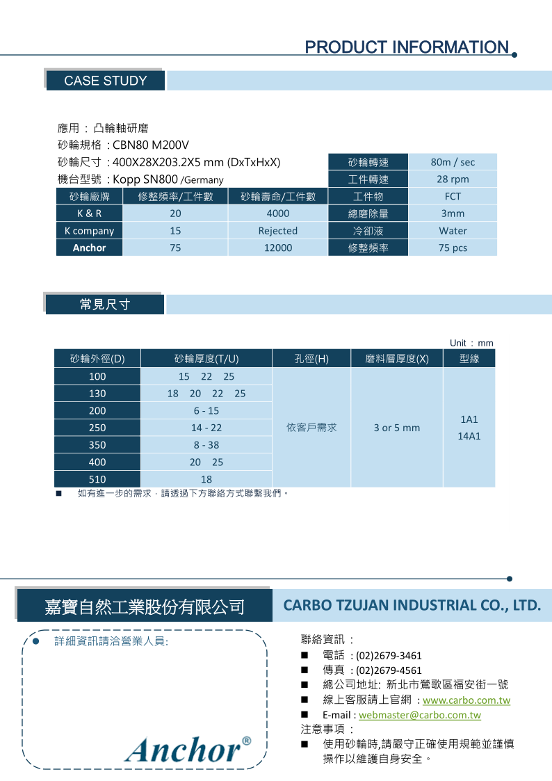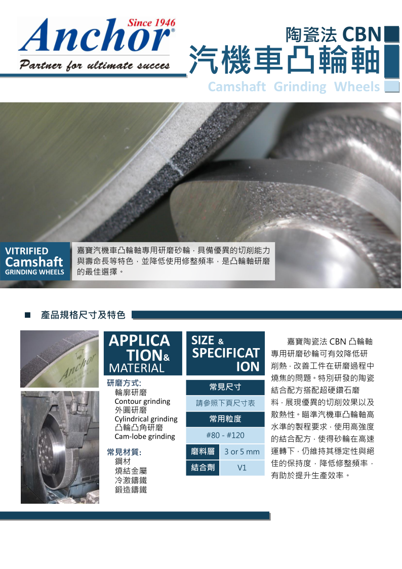 汽機車凸輪軸研磨用瓷質法CBN砂輪
