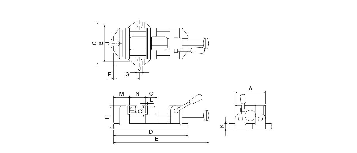 傳統螺桿式虎鉗傳統式螺桿虎鉗是一種常見的固定工具,通常安裝在工作臺上,用來夾持工件,以便進行切割、打磨、鑽孔、組裝或焊接等作業。它的主要特徵是利用螺桿機構控制活動鉗口的開合,透過旋轉手柄帶動螺桿,使鉗口能精確地調整寬度並牢固夾緊工件。虎鉗通常由鑄鐵或鋼材製成,具有堅固耐用、夾持力強的特點,是金屬加工與木工不可或缺的工具。台湾米其林35015 快速虎鉗型号:MCL-CK30 / MCL-CK40 /