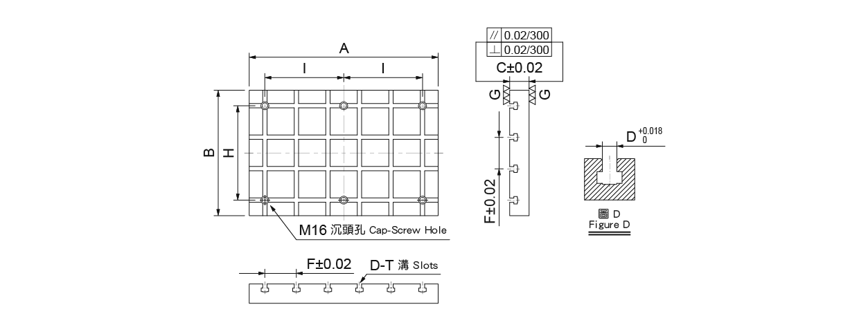 ● 以T型溝定位方式,利用標準化治具零件,可快速組立完成一套符合需要之治具。