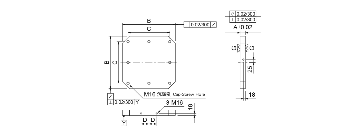 台湾米其林35305 MC基板型号:BP04-50400-0400 / BP04-50500-0500 / BP04-50630-0630 / BP04-50800-0800●材質:FC30,熱處理:燒鈍。●適用於臥式MC。●可依實際需要,自行鑽孔加工製作專用治具。單位:mm訂購編號型號ABCD定位孔數重量 (kg)35305-05BP04-50400-0400504004005545735305