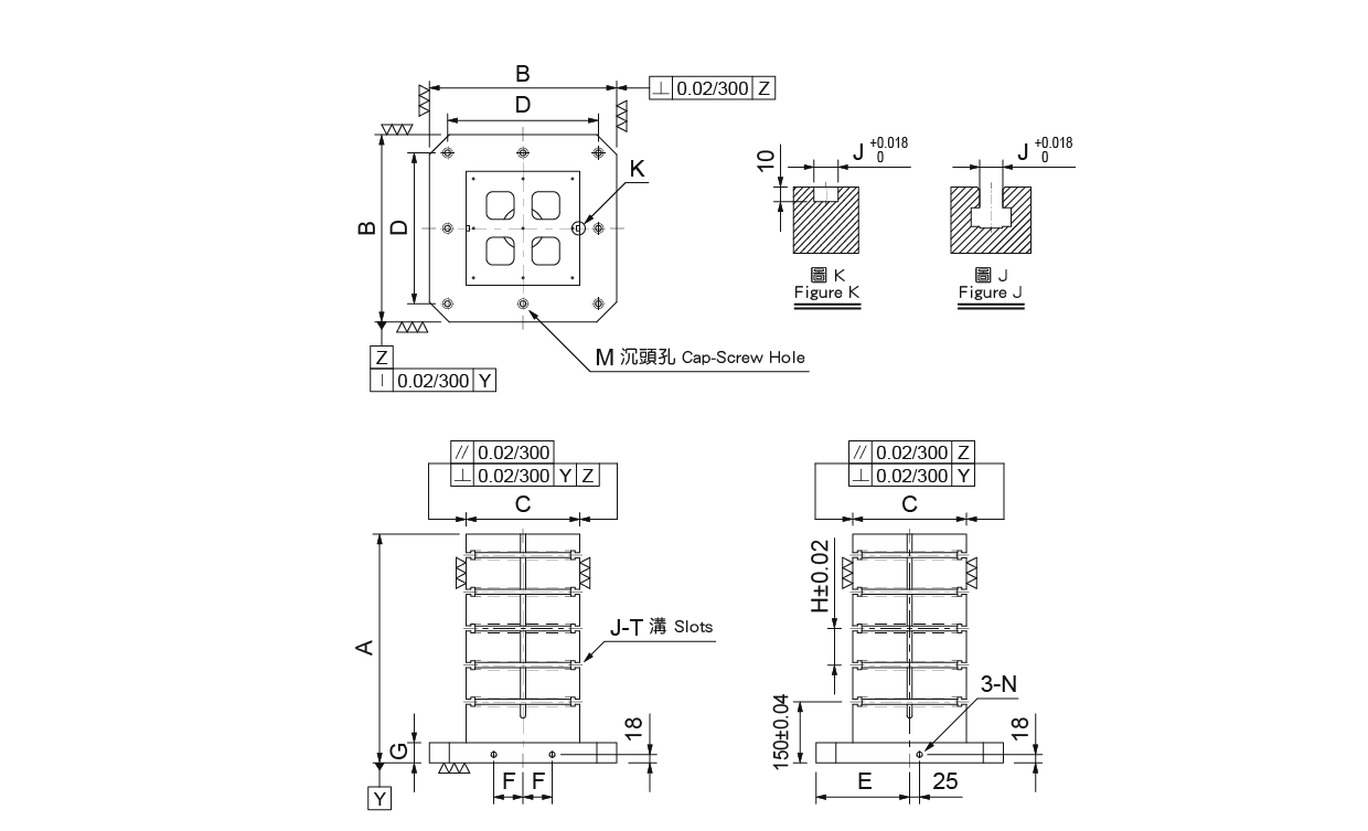 BP09-400400-0500-14 / BP09-400400-0650-14 / BP09-500500-0600-14 / BP09-500500-0750-14 / BP09-630630-0700-14 / BP09-630630-0850-14 / BP09-800800-0800-14 / BP09-800800-1000-14 / BP09-10001000-1000-14 / BP09-10001000-1250-14 ● 材質:FC30,熱處理:燒鈍。 單位:mm