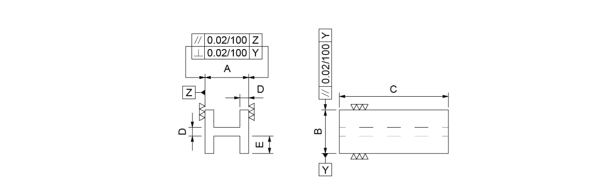 台湾米其林35550 H型治具型号:BC01-063063-200 / BC01-080080-200 / BC01-080080-400 / BC01-125125-200 / BC01-125125-400●材質:FC30,熱處理:燒鈍。單位:mm訂購編號型號ABCDE重量(kg)35550-05BC01-063063-20063632001225.52.835550-10BC01-08008