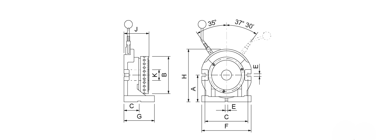 台湾米其林36055 D7強力三爪分度頭型号:MCL-D7●可臥立兩用,適合銑床或鑽床簡易快速分割使用。●可分割24等份,15度為一個單位,可分割成 2.3.4.6.8.12.24等份。●標準配備為7”強力三爪,亦可選配7”普通三爪。單位:mm訂購編號型號ABCDEFGHJK max・最大負載重量重量 (kg)36055MCL-D7138192230801626016027313256Max. 5
