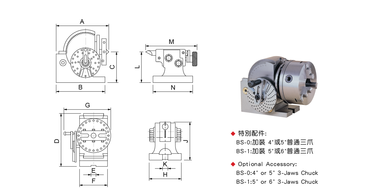 | 型號 | H | J | K | L | M | N | 心軸內徑 | 中心頂針推拔 | 重量 (kg) | ||||||