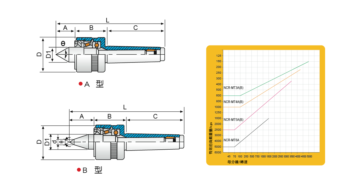 台湾米其林38517 可調式頂針型号:NCR-MT3A / NCR-MT4A / NCR-MT5A / NCR-MT6AA / NCR-MT3B / NCR-MT4B / NCR-MT5B●此頂針適用於中、重負荷使用,具有防水性。●心軸使用合金工具鋼之材質,經真空熱處理HRC60˚±2˚ 具高剛性及耐磨性。●使用滾椎軸承、止推軸承及滾針軸承之組合。