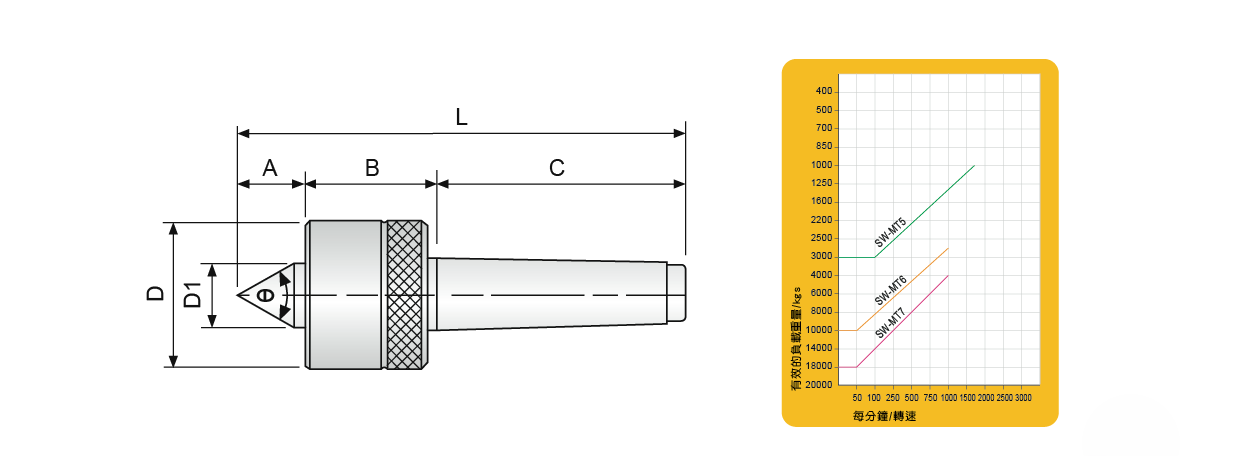 ● 此頂針適用於重型車床及較重負荷載使用,具有防水性。