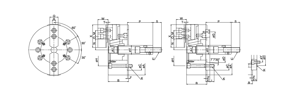 | 訂購編號 | 型號 | 主軸鼻端番號 | A | B | C (h6) | D | E | E1 | F |