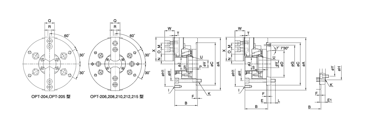 | OPT-212 | 190 | 171.4 | PCDφ250 | 6-M12xP1.75 | 91 | 6-M16xP2.0 | 25 | 30 | 61.6 | 56.3 | 46 | 12 | 8 | -15 |