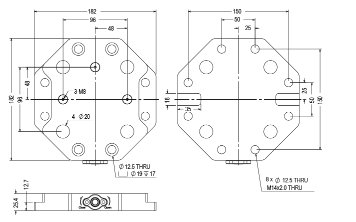 | 21062-05 | MCL-260500 | 25.4*182*182mm | 15000N | 0.005mm | Max.30Nm | 4.3kg |