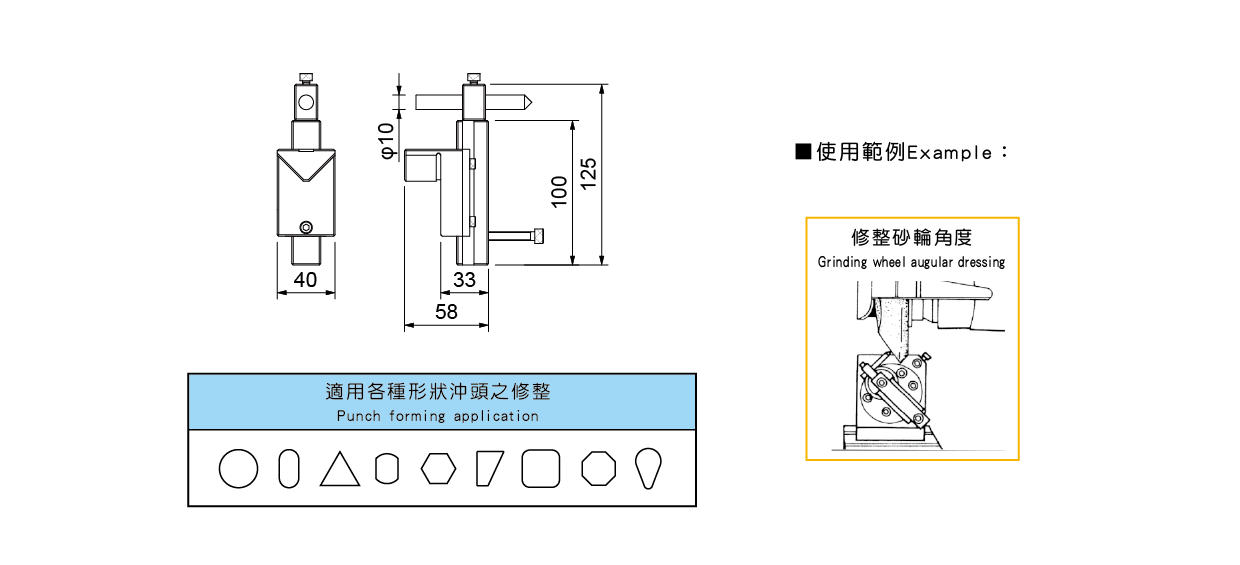 31036 角度修整器型号:MCL-350-1專為修整砂輪設計,搭配 MCL-350. MCL-450一起使用,可將砂輪修整成所需形狀。