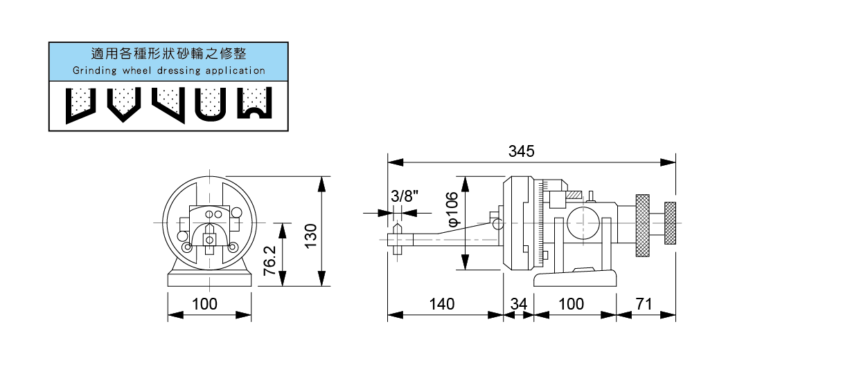 ● 適用於平面磨床,可修整R角,也可修整各種角度。