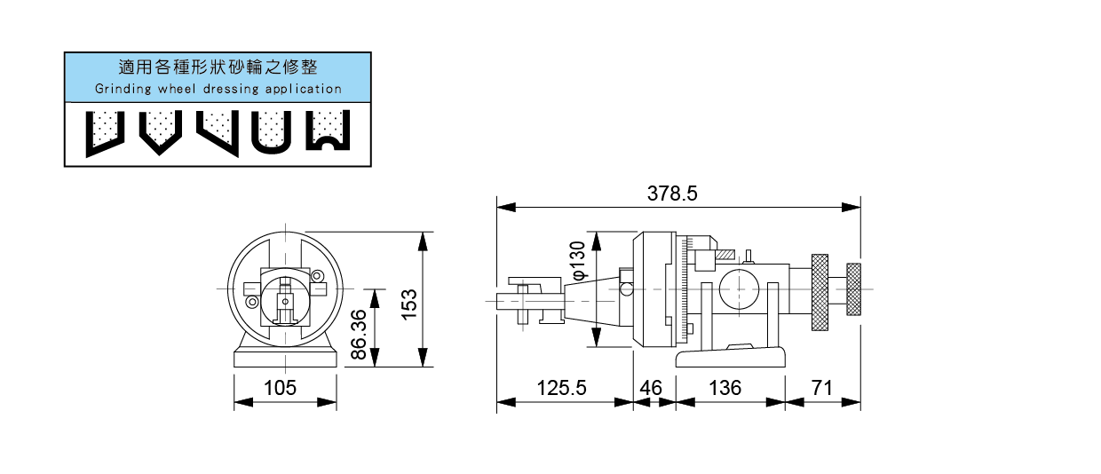 ● 適用於平面磨床,可修整R角,也可修整各種角度。