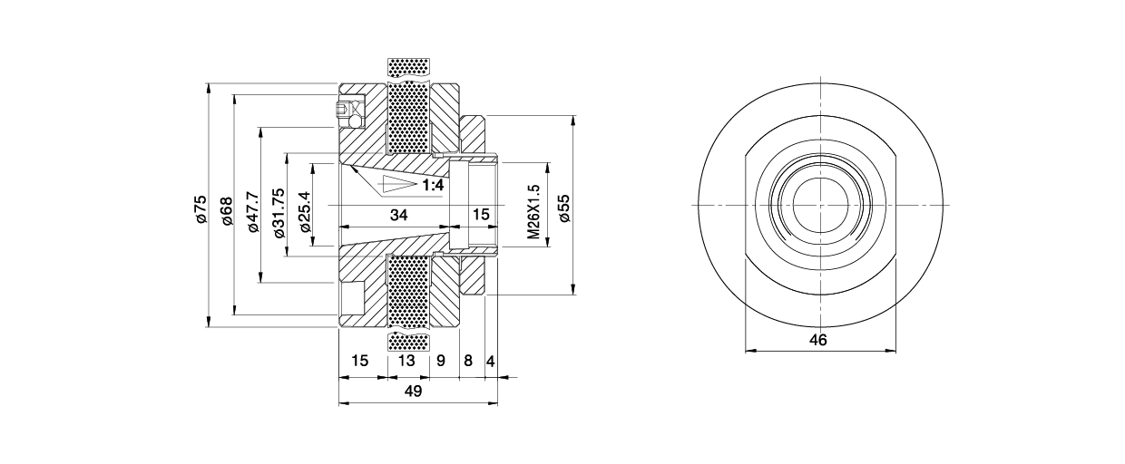 砂輪法蘭(Grinding Wheel Flange) 是磨床機台中不可或缺的固定零件,用於安裝、支撐與固定砂輪。透過砂輪法蘭的精密夾持,砂輪能保持正確的中心定位與靜平衡,在高速運轉下依然穩定,避免震動與偏擺,確保磨削加工的精度與安全性,延長砂輪與機台壽命。