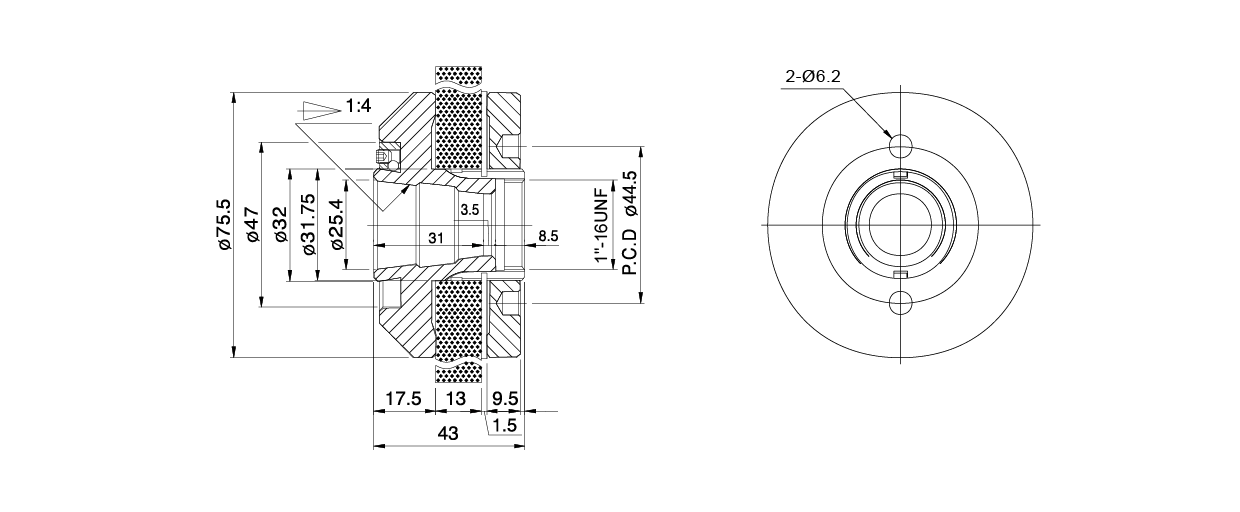 砂輪法蘭(Grinding Wheel Flange) 是磨床機台中不可或缺的固定零件,用於安裝、支撐與固定砂輪。透過砂輪法蘭的精密夾持,砂輪能保持正確的中心定位與靜平衡,在高速運轉下依然穩定,避免震動與偏擺,確保磨削加工的精度與安全性,延長砂輪與機台壽命。