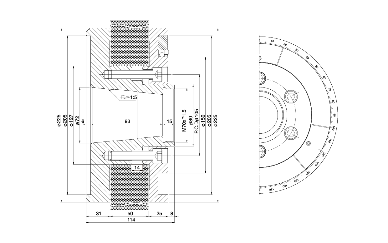 ● 適用於岡本磨床系列機床主軸,面盤有鐳射刻字分度。