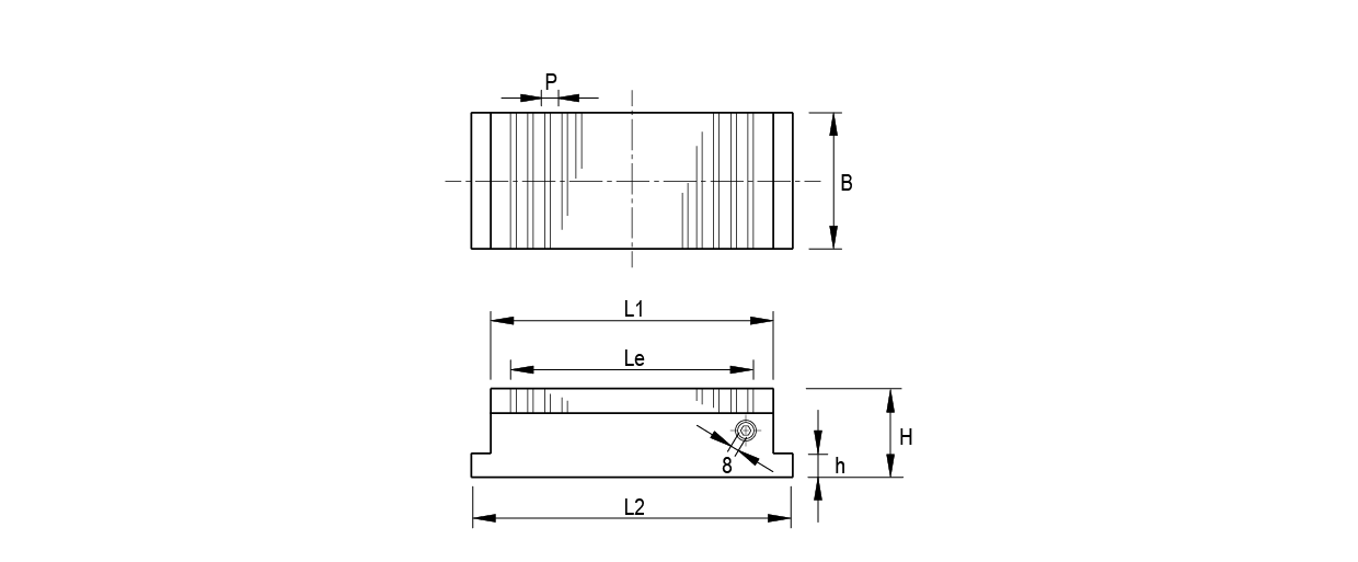 | B | L1 | Le | H | P | L2 | h | |||