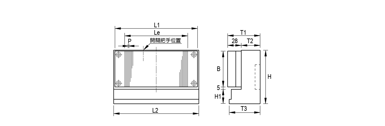 | B | L1 | Be | P | L2 | T1 | T2 | T3 | H | H1 | |||