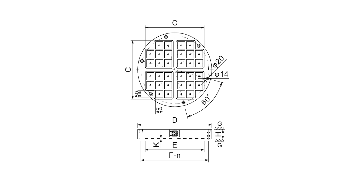 | 34189-30 | EPMR-70QZ | φ700 | 635x635 | φ600 | φ660 | 6 | 65 | 76 | 150 |