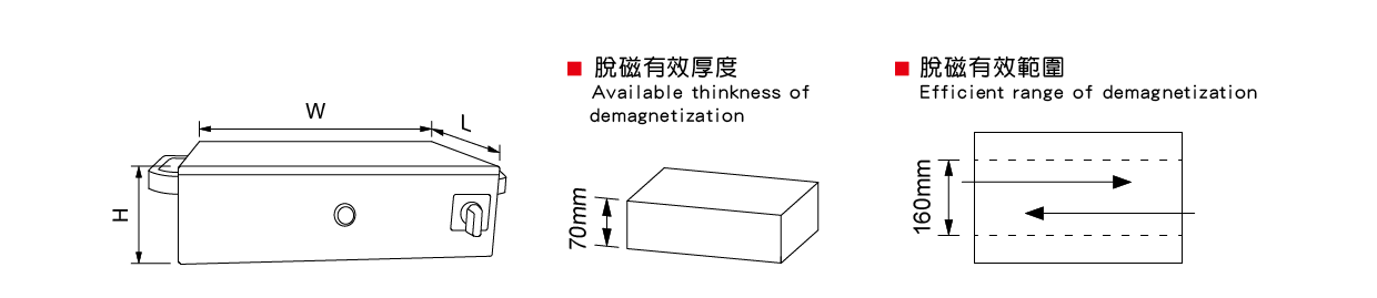 ● 適用於一般零組件、配件、大型模具、大型鋼板等,固定方式進行脫磁作業。