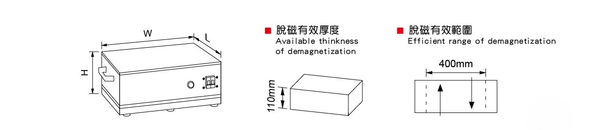 ● 適用於一般零組件、配件、大型模具、大型鋼板等,固定方式進行脫磁作業。
