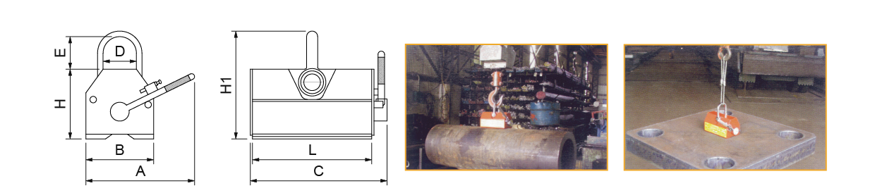 | 訂購編號 | 型號 | 吊重力(kg) | 吸著面 | H | H1 | A | C | D | E | 重量(kg) | ||||||
