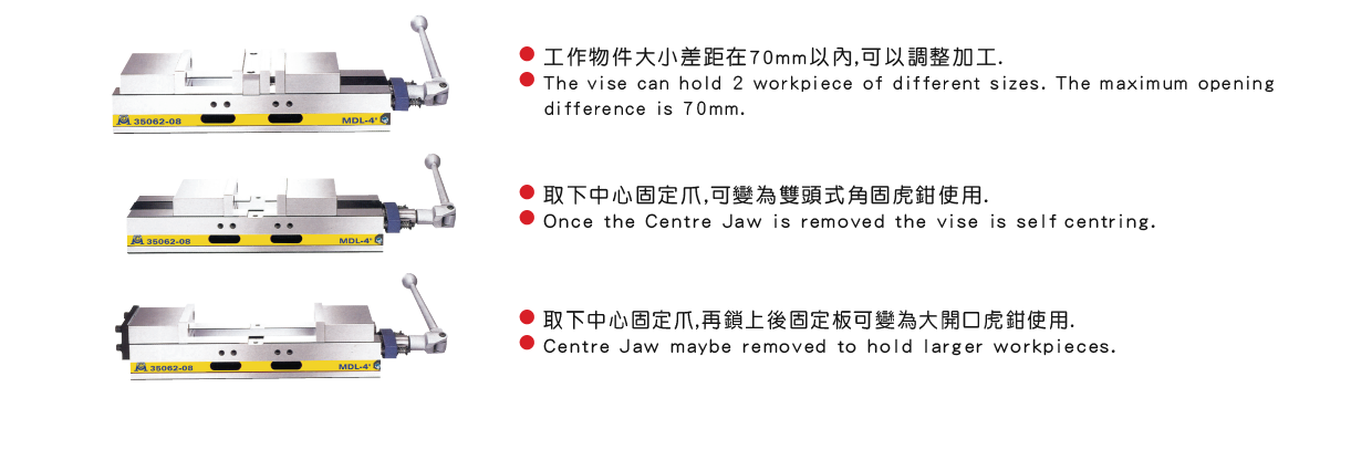 ● 在CNC機器上使用,可以同時夾持兩個工作物.