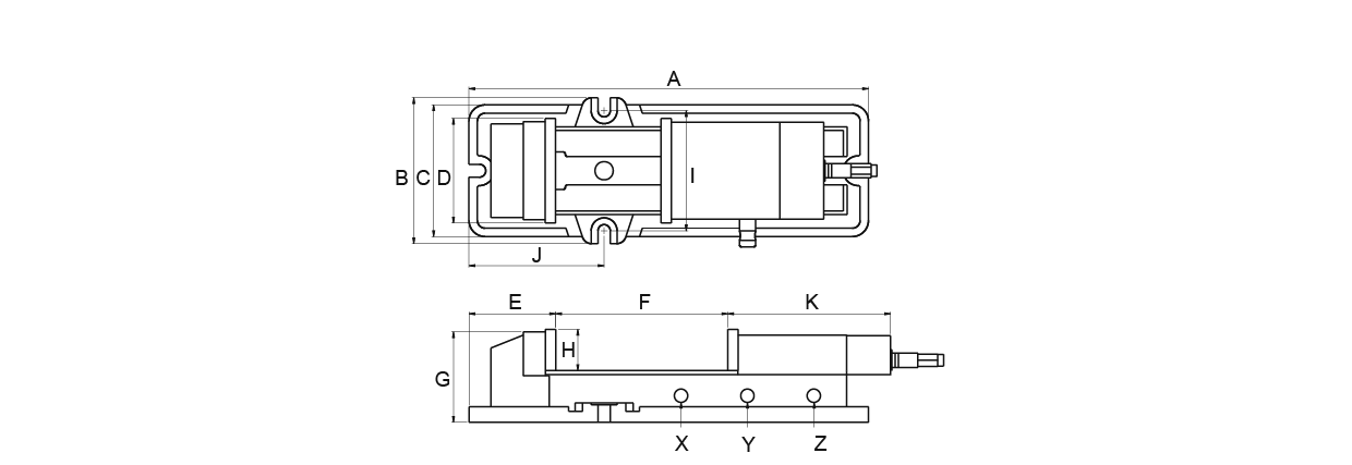 | 訂購編號 | 型號 | A | B | C | D | E | F | G | H | I | J | K | X | Y | Z | 夾持力 (kgf) | 重量 (kg) |