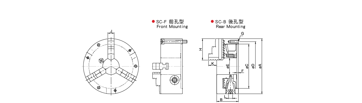 台湾米其林36025 普通型三爪型号:SC-3B / SC-3F / SC-4 / SC-5 / SC-6 / SC-7 / SC-8 / SC-9 / SC-10 / SC-12 / SC-14 / SC-16單位:mm訂購編號型號ABCDEFGHJKL最高迴轉速 (min-1)外徑把握內徑把握重量 (kg)36025-03SC-3B85456073163.53-M6xP1.0351115725