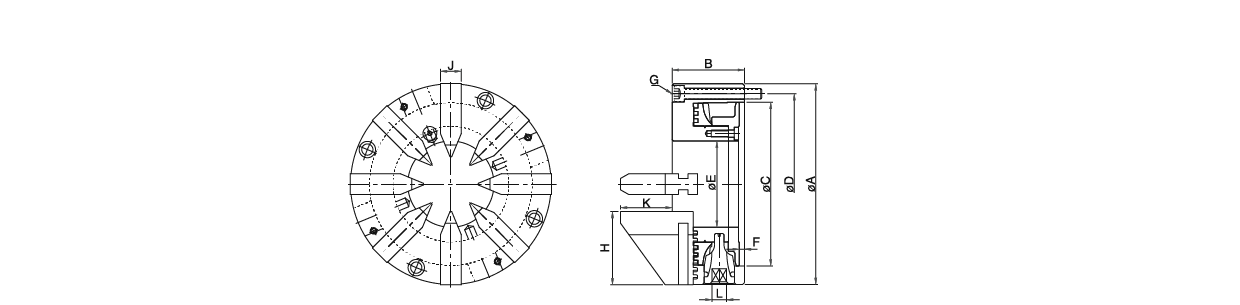 台湾米其林36033 錐型八爪型号:AE-09單位:mm訂購編號型號ABCDEFGHJKL最高迴轉速 (min-1)外徑把握重量 (kg)36033-09AE-09233841902101005.54-M12xP1.75852460121000 R.P.Mφ7~φ10021