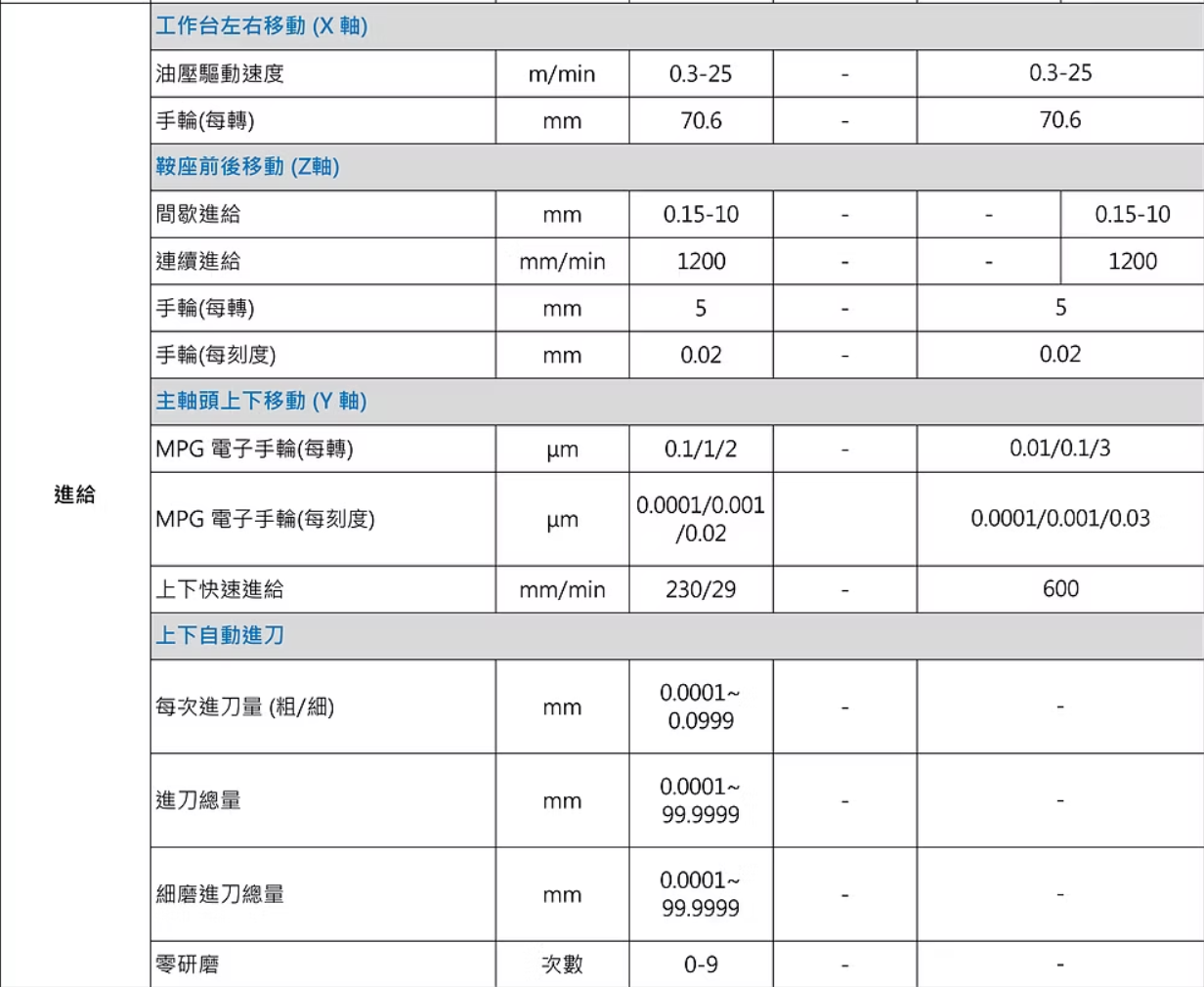 先進的油壓迴路系統,工作台在兩端反轉時,達到最小的震動,速率0.3m/min~25m/min, 近接開關採內藏式設計,