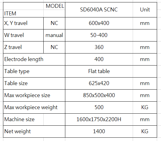 SD6040AS CNC加工尺寸 (擇一)熱處理鋼、不鏽鋼、鎢鋼、鋁、鈦合金、軟料工件材質 (擇一)Φ 0.1~Φ0.2、Φ0.2-Φ1.5、Φ1.5-Φ3.0、Φ3.0-Φ6.0Description選配